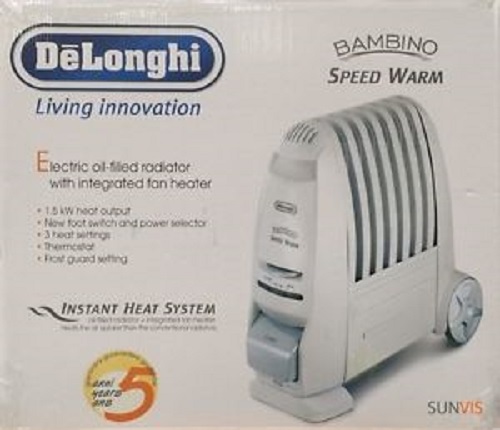 Free delivery over 50 Easy returns Secure Payments Customer Support. The DeLonghi Bambino electric oil filled radiator is a 15kW oil filled radiator with an integrated fan heater to heat up areas very quickly.